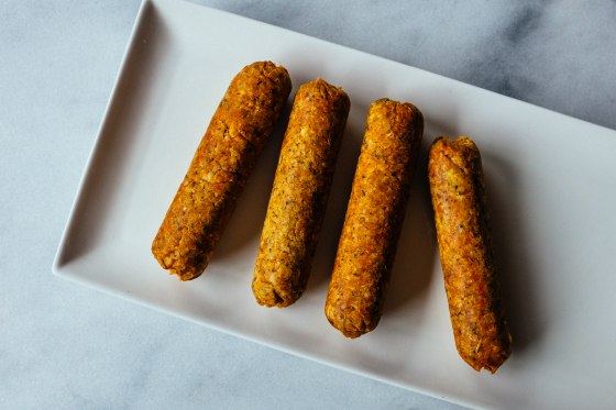 While these don’t mimic sausages in the traditional sense of being juicy and tender – and wrapped in sausage skin – they’re a good non-meat alternative, with the chickpeas giving a good protein boost.